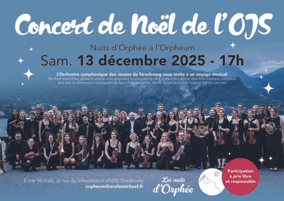 L’Orchestre symphonique des Jeunes de Strasbourg vous invite à un voyage musical. Ses deux ensembles, jeunes et juniors, vous proposent un programme varié, mêlant des airs du répertoire classique, populaire, ainsi que du cinéma.